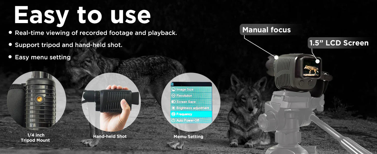 - Affordable and Designed for Civilians: Unlike expensive, military-grade night vision devices, our monocular is designed for civilians and is more like a camera with super night vision capabilities. It's perfect for those who want to explore the night without breaking the bank. (it has a visual range of approximately 656ft in daylight and 98ft in complete darkness, please consider this before purchasing.)